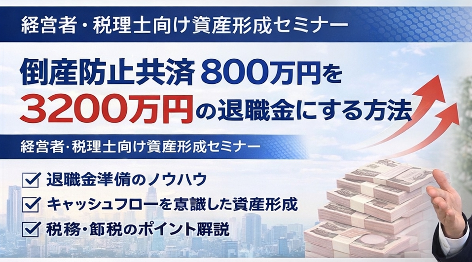 ※倒産防止共済800万円は「内部留保800万円」と読み替えてご参加いただけます 2026年3月4日(水)、経営者・税理士の…